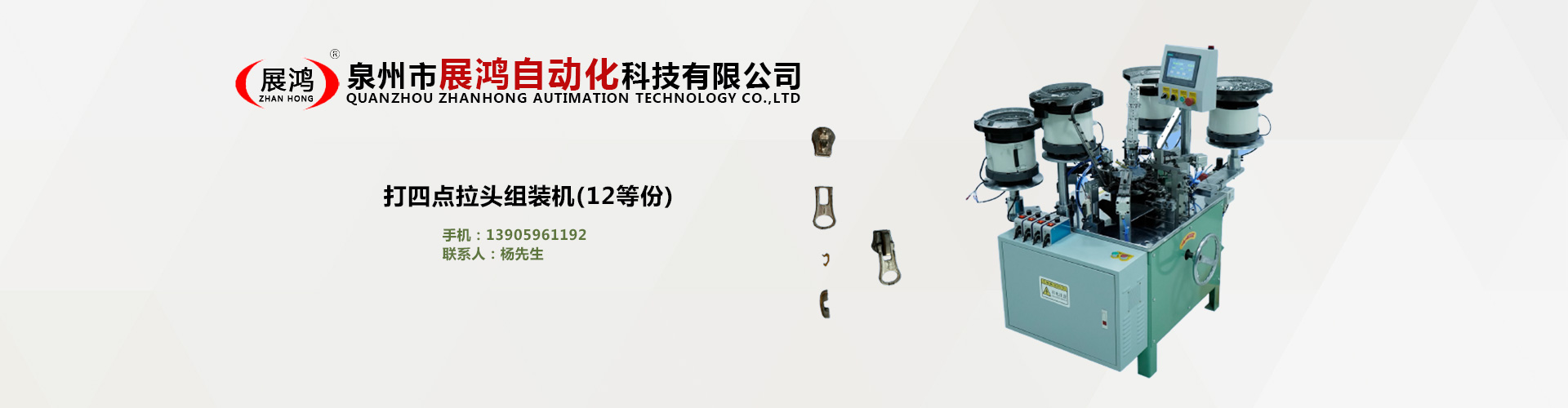 泉州市展鴻自動(dòng)化科技有限公司始創(chuàng)于2003年,是一個(gè)集研發(fā)、制造、銷(xiāo)售為一體的現(xiàn)代化公司,專(zhuān)業(yè)從事研發(fā)、生產(chǎn)各類(lèi)型號(hào)的全自動(dòng)拉鏈頭裝配機(jī)。泉州市展鴻自動(dòng)化科技有限公司始創(chuàng)于2003年,是一家集研發(fā)、生產(chǎn)、銷(xiāo)售、服務(wù)于一體的現(xiàn)代化拉鏈頭設(shè)備智能制造生產(chǎn)企業(yè):專(zhuān)業(yè)從事研發(fā)、生產(chǎn)各類(lèi)型號(hào)的全自動(dòng)拉鏈頭智能裝配機(jī)。亦可根據(jù)不同客戶(hù)的需求,提供適合客戶(hù)自身需要的“私人定制”式專(zhuān)用拉鏈頭設(shè)備及自動(dòng)檢測(cè)拉頭品質(zhì)一體機(jī)。泉州市展鴻自動(dòng)化科技有限公司始創(chuàng)于2003年,是一家集研發(fā)、生產(chǎn)、銷(xiāo)售、服務(wù)于一體的現(xiàn)代化拉鏈頭設(shè)備智能制造生產(chǎn)企業(yè):專(zhuān)業(yè)從事研發(fā)、生產(chǎn)各類(lèi)型號(hào)的全自動(dòng)拉鏈頭智能裝配機(jī)。亦可根據(jù)不同客戶(hù)的需求,提供適合客戶(hù)自身需要的“私人定制”式專(zhuān)用拉鏈頭設(shè)備及自動(dòng)檢測(cè)拉頭品質(zhì)一體機(jī)。